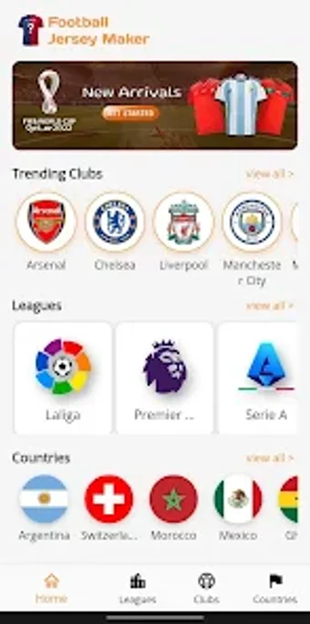 With the app, you can design your own football jersey for any football club or football team from around the world, including England, Spain, Germany, Italy, France, Russia, Portugal, Poland, Belgium, and more. You can also choose from different countries that will be part of the upcoming FIFA World Cup.